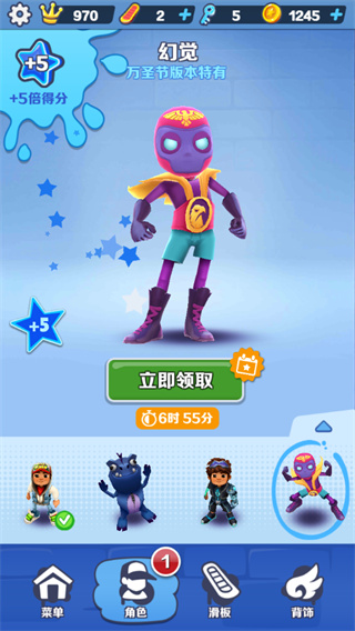万圣节限定滑板「液体」,与角色「幻觉」搭配使用可激活5倍得分。