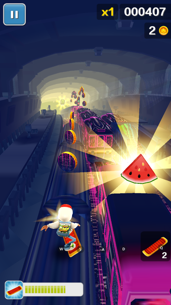 双击屏幕可以使用滑板,滑板存在时间可以抵消一次致命伤害