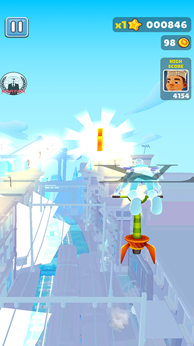 1、收集硬币并购买道具,比如飞行器或磁铁,这样可以使你跑得更远,更快;