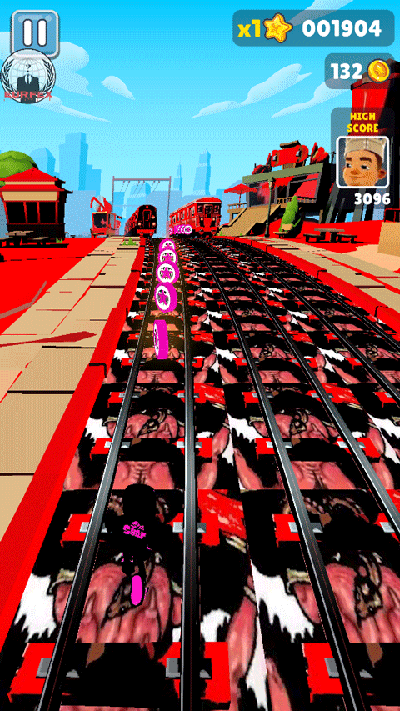 3、在地铁中穿梭,避开任何障碍物,捡起金币,并收集更多奖励;