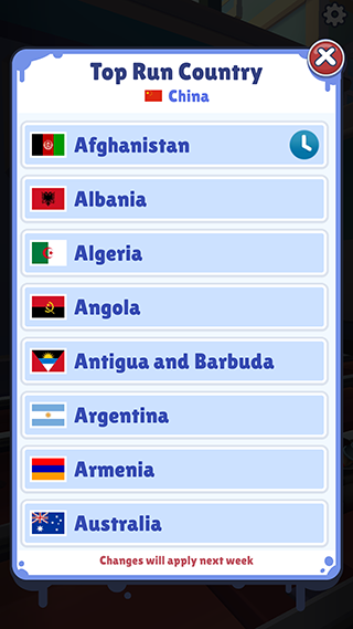 3、进入设置菜单后,找到“Top Run Country”,点击进去。