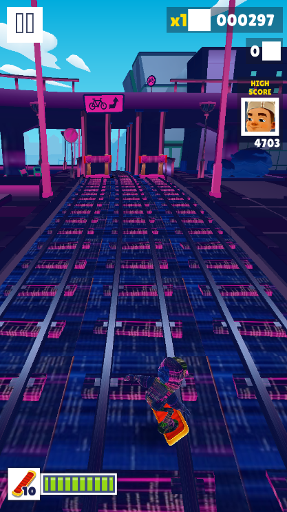 4、双击屏幕会出现滑板,在撞到前方障碍物或者火车的时候有第二次生命;