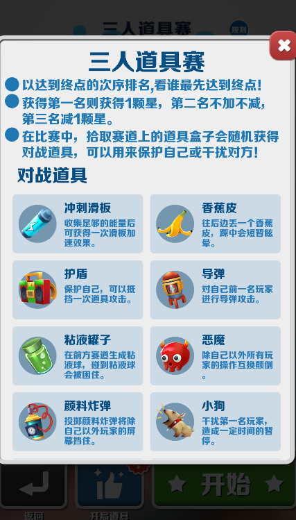 需要在跑酷的过程中捡取路上各种道具,使自己加速或者让别的玩家减速,让自己最先到达终点。