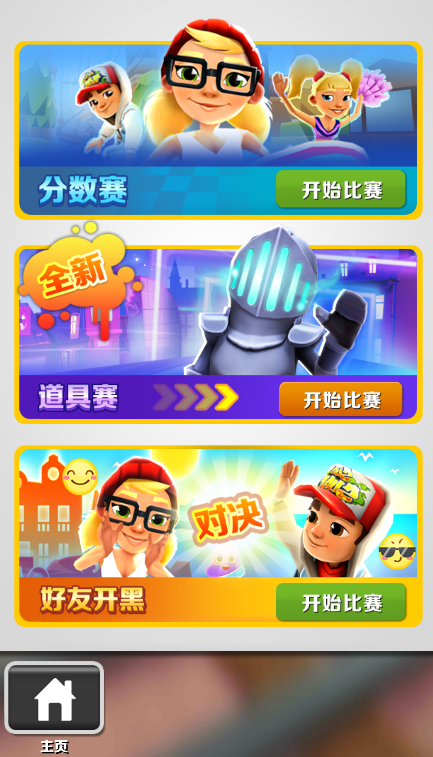 二、竞技赛玩法,竞技赛有分数赛、道具赛、好友开黑三个模式。