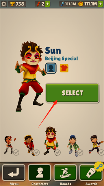03、找到想玩的角色后,点击“SELECT”按钮