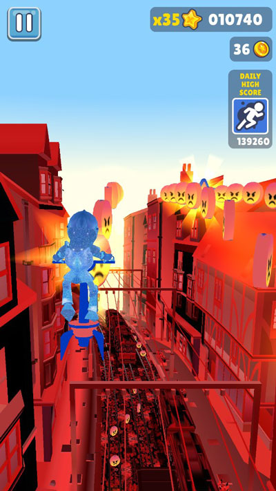 让我觉得特别有趣的是游戏中的道具系统,不仅可以捡到各种实用的道具,还能在商店购买像“双倍积分”、“隐身”这样的强力道具,这让跑酷变得更加轻松。另外,游戏的音乐也很棒,配合着红色跑道和愤怒金币的设计,整个游戏充满了沉浸感。