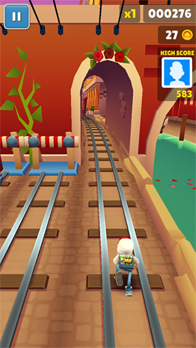 玩法上与原版类似,玩家扮演主角在地铁上涂鸦并躲避警察追捕,通过跳跃、翻滚等操作避开障碍,同时收集金币和其他道具来提高分数。游戏加入了好友互动、排行榜、公会等社交功能,增加了玩家之间的交流和互动。