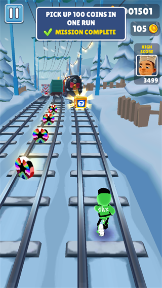 地铁跑酷神链绿杰魔改版是个很有意思的游戏版本,Jake换上了绿色皮肤,金币变成了彩虹色,还有圣诞主题的背景,下雪的速度会随着跑酷速度增加,感觉挺有新鲜感。游戏玩法和原版差不多,但操作更流畅了,滑板手感也更好,适合喜欢挑战的玩家。