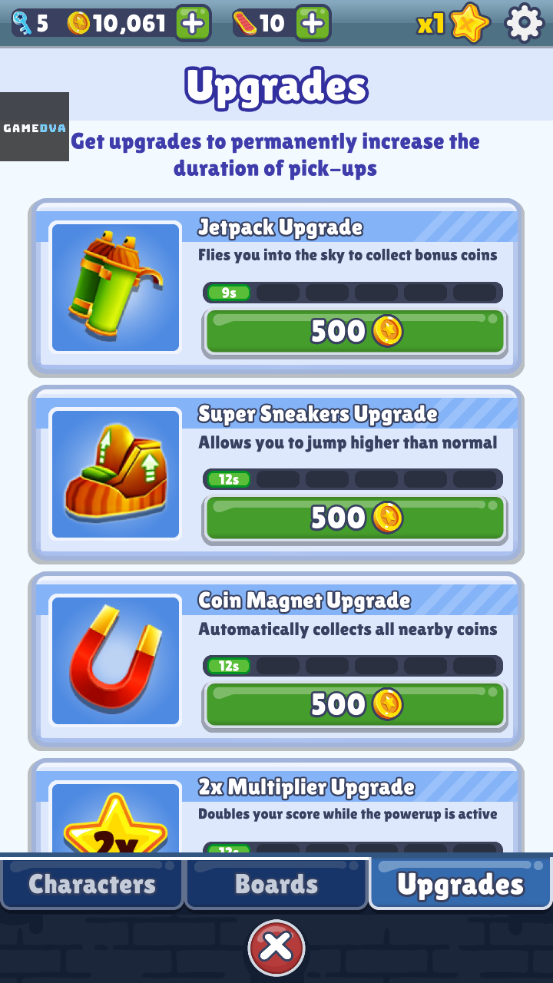 看名字相信已经猜出,磁铁的作用就是吸取金币,当然只有获得更多的金币才能解锁角色,以及购买和升级道具。