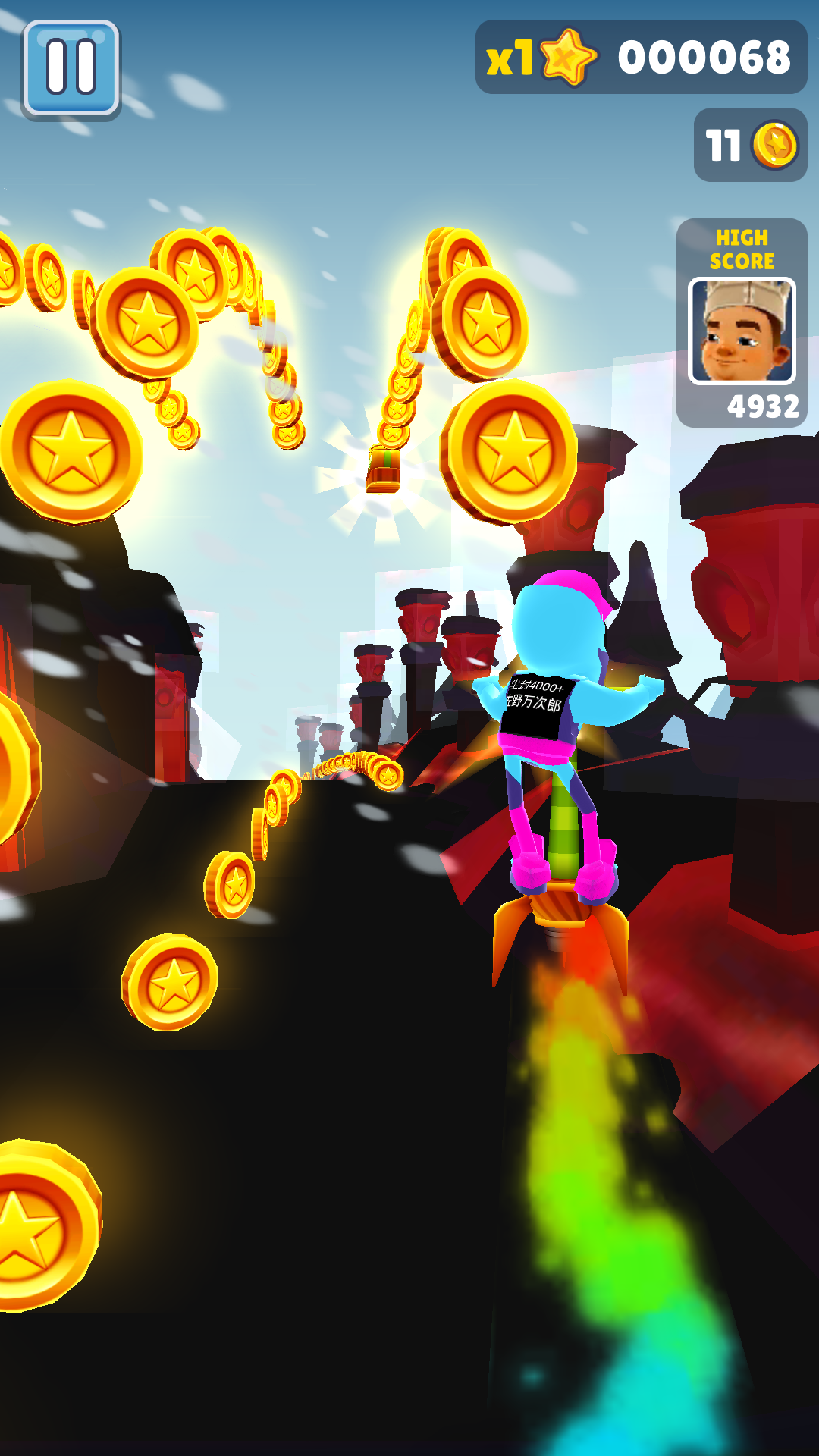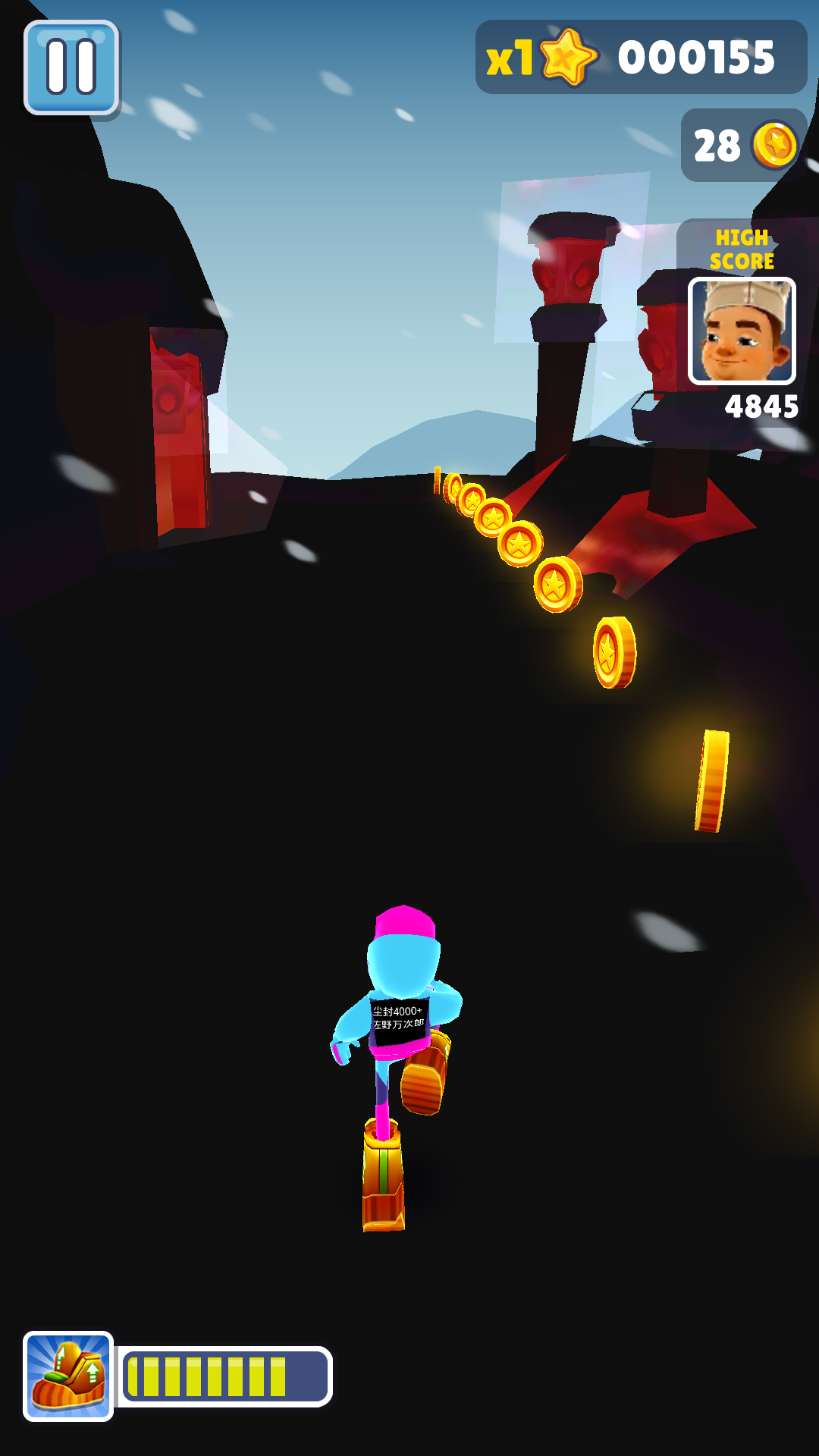 1、在把握跳跃距离失误的情况下可以下滑屏幕快速下落,这是地铁跑酷最简单而又最实用的技巧。