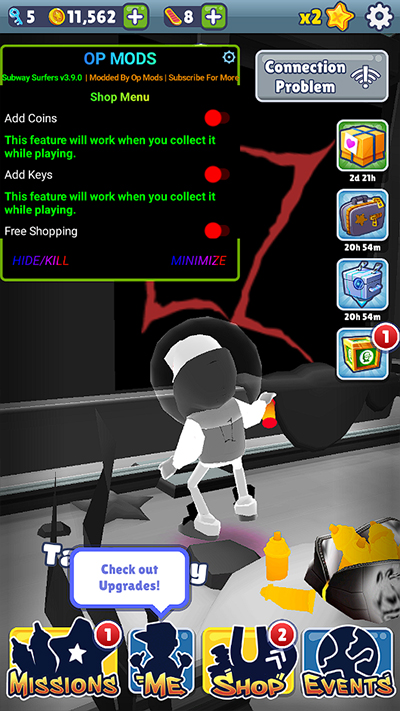 2、内置菜单,全角色全滑板一键解锁,开启无敌模式畅快跑酷体验。