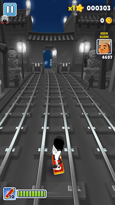 游戏以角色沿着地铁轨道跑酷为主题,玩家需要控制角色进行跳跃、下滑、转弯等操作,避开障碍物、收集金币和道具,挑战高分;