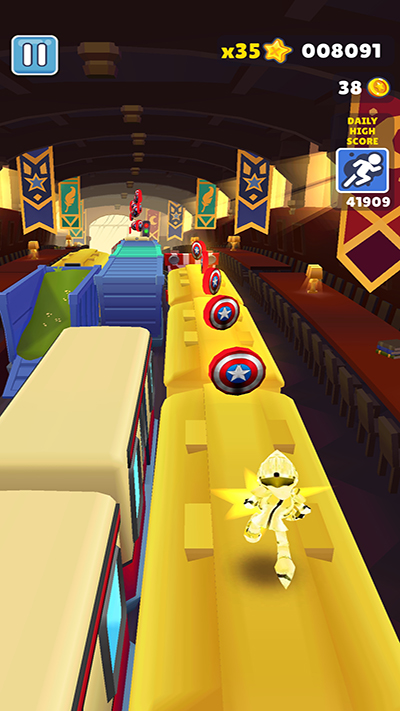 金币设计也很有创意,直接换成美国队长的盾牌形状,既有趣又有辨识度。最让我心动的是这个版本提供了无限的货币和道具,钥匙、滑板皮肤什么的都很多,完全不用担心资源不足。这种设定特别适合新手或者想轻松玩的玩家,不用花时间刷钱,可以直接体验游戏的核心乐趣。