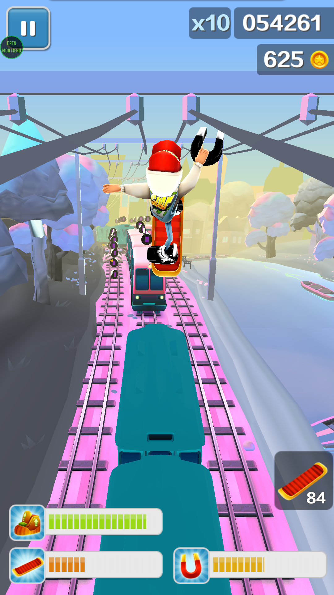 地铁跑酷星辰之城是快手UP主“星辰”制作的国际服地铁跑酷魔改版,相较于原版,此版本地图和房屋的样式变成了粉色的色调,看起来非常的梦幻,像是穿梭在童话世界,游戏中的金币修改成了紫黑色的样式,与地图十分的搭配,并且游戏中内置了一个mod菜单,可以实现无限内购、全部滑板、全部装饰、所有角色等功能。