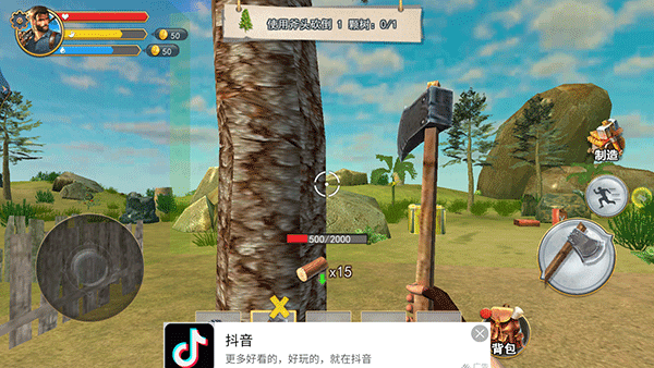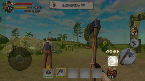 游戏操作简单直观,左边轮盘移动,拖动屏幕调整视角,右边是攻击和奔跑键。开局会有一个物资箱,里面有初始装备。游戏特色包括自由搭建各种建筑、超真实的3D场景、丰富的武器系统和多样的野兽猎杀体验。你需要探索世界、收集资源、应对危机,并不断升级装备来提升生存能力。