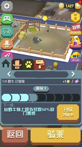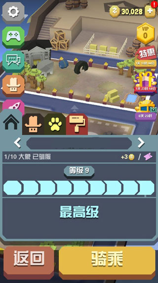 ②先骑鸵鸟,再换骑狮子。当鸵鸟升到相应的等级时 如果撞到一个单位会飞出去。相当于多一条命。如果不是手残 基本上都能跑个两千米,靠着墙跑。之前也说过 绳子越套越小,但是这时候你的套绳还没套过。狮子就不用说了升到一定等级可以没吃一个动物延长时间。这两个都需要升到一定等级(具体多少自己看升级功能)。