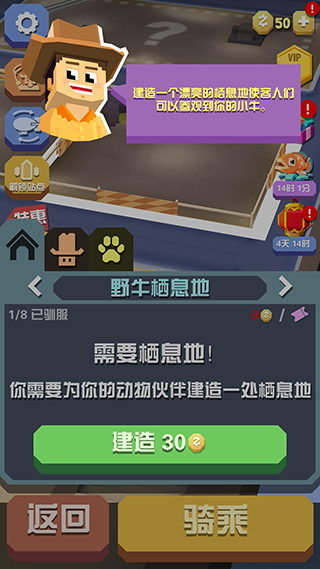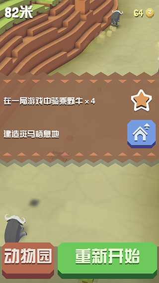 游戏里有很多隐藏的动物,每种动物的捕捉方式都不一样,比如“暗黑野牛”需要骑同一头牛跑800米才能解锁,“摇钱牛”则只能在商城购买。还有一些BOSS级别的动物,完成特定任务后才能遇到,挑战难度很高,需要玩家有很好的操作和耐心。