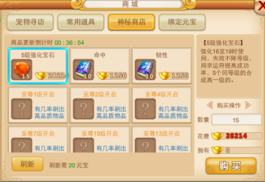 在神秘商店中,每过一段时间便会刷新出新的宝物,其中不仅有极品材料可以选择,还有宠物的技能书,甚至有机会抢得高级人形宠物。这对于像小编这种“非洲人”来说,不得不说是拯救我们脸黑的神器。