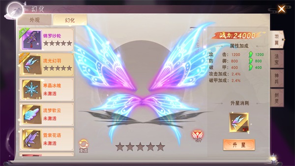 每一位上仙所幻化出来的羽翼都是独一无二的,羽翼修炼的境界高了,还能幻化出不同的外观,上仙们可以自由选择羽翼的展示形态。