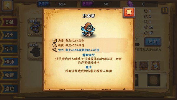 咒术师可以提供很好的debuff,也可以针对特定敌人,在前期关卡能克制具备闪现及治疗的敌人,同时具备的debuff效果也能很好增加整个战场布局的输出。因为看中的是技能以及debuff效果,因此在较大距离内放置一个就足够了。