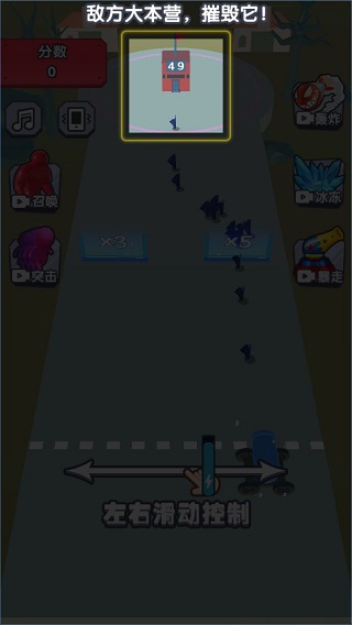 3、其中数越大,产生的士兵越多,对面便是敌方大本营,通过左右滑动控制,增加士兵数量,依靠数量的优势催他敌方大本营。