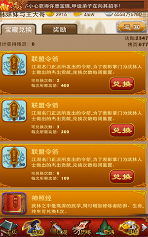 由于宝藏数量过多,地点过于险要,非一人之力所为,需集合众多侠士方能取得,为此请各位掌门组成联盟,且联盟等级达到4级之后,会自动开启寻宝入口,各位掌门可点击前往开始夺宝之旅。
