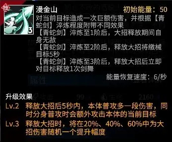 小青依靠大招打出超额伤害,并且根据青蛇剑的淬炼所在阶段等级附带特殊效果。