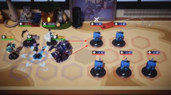 开始战斗后,手办会优先选择当前横排的敌人进攻,直到当前横排敌人都被消灭才会寻找相邻横排的最近敌人攻击;注意哦,纪律严明的手办们并不会随便挑选最近的敌人进攻,一定会先进攻当前横排的敌人。