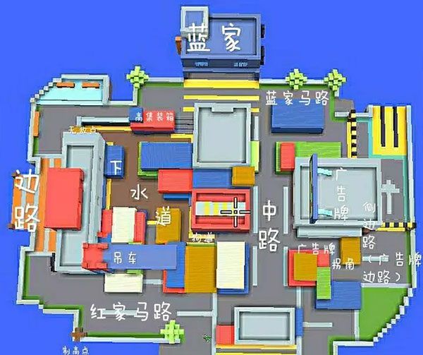 先从红方说起,红方属于地势低平的一方,并且没有能够上房的位置,所属劣势方,而且不管是从边路冲还是侧边路偷,都没有地形与掩体优势,所以红方想赢不能冲动,要进行防守。