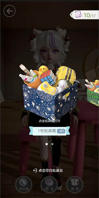 点击给玩具,选择玩具箱(不同玩具箱中的玩具能够产出的服装图纸也是不一样的)