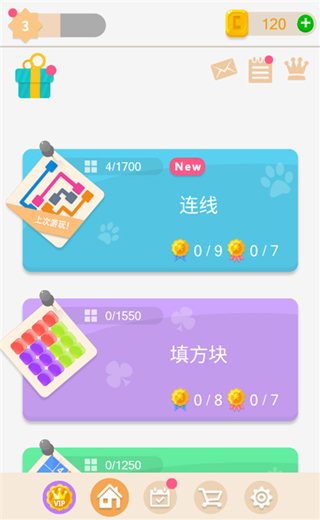 3、游戏中有连线、填方块、七巧板、一笔画、逃脱、数字连线、接水管、滚球、颜色找茬、推箱子等多种玩法,这里我们选择连线玩法;