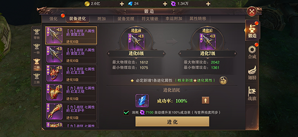 二转翅膀的合成,使用三转装备成功率可以达到百分之八十。
