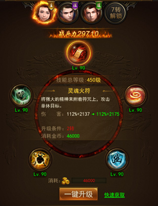 灵魂火符——将强大的精神来附着符咒上,攻击单体目标。