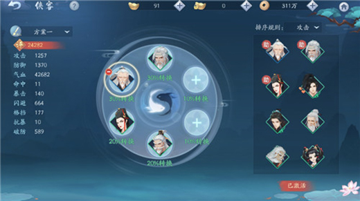 2、由于不同卡槽的转化比例不同,因此建议将高阶与高等级的侠客放入比例转换较高的位置。