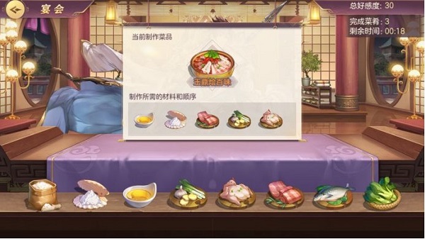 宴会:在宴会中,可为武将制作精致的菜肴,获得大量好感度,并且在宴会结束后可以获得用来赠送给武将的礼物。