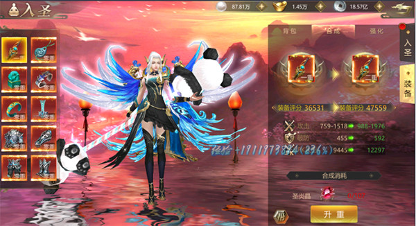 入圣装备可以通过分解得来的圣炎晶来合成或使使其提高一位重数,从而获得更高的属性哦!但只能合成到当前入圣重数对应的装备。