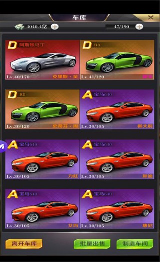 各位总裁们下午好,在游戏还未首发上线之前相信大家等得特别着急,~小编偷偷位大家带来游戏汽车改装攻略,大家可以先收藏,等到游戏上线就能领先别人一步咯~ 在游戏中。一辆好车占了很大的战力加成比重。特别是橙车以上,战力加成就更高了。车子从低到高的等级分别是:绿车,蓝车,紫车,橙车及红车。具体车型可以查看车库里的制造车间。一般都是上一等级的车子花费一定数量的金钱改造成下一等级的车 。 一般每种颜色的车子都分为SABCD级别,S为最高,D为最低,见下图: