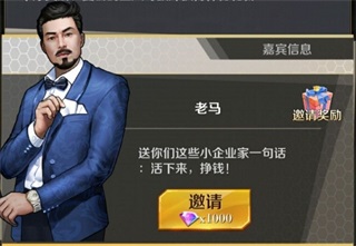 boss邀请是很贵的,而且只有主办方可以邀请 (建议主办方 让其他玩家多助兴500钻的酒水几个,平摊邀请boss的钻石钱 )