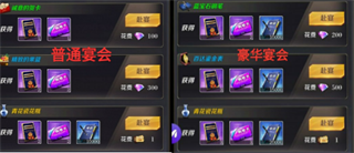 普通宴会2000钻/8人、豪华宴会5000钻/10人