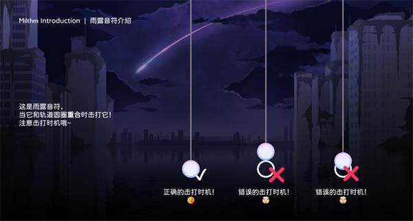 1、这是雨露音符,当它和轨道圆圈重合时击打它!注意击打时机噢~