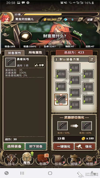 不过高级的技能还是需要的一定的等级要求,学习了技能之后需要注意一个更换,同时在我们的角色选项中是由装备强化功能的,这个越到后期越关键,前期的话金币不是很够可以暂时放一下。
