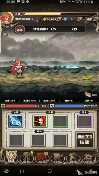 首先点击的就是右下角的地图,在地图中我们可以选择冒险的关卡,直接开启战斗 即可,在战斗过程中我们可以看到主界面下方就是我们的技能了。