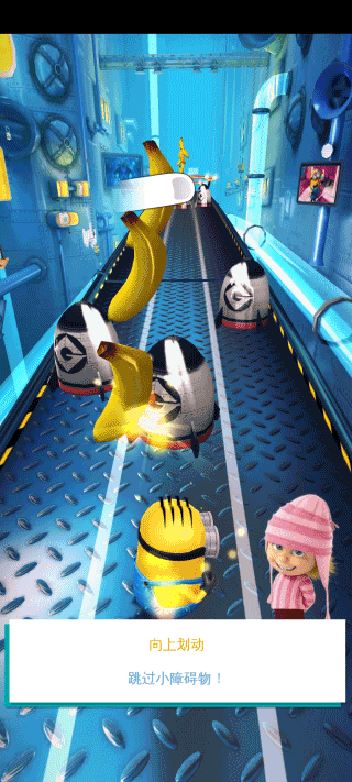 4、另外,在“小黄人赛跑”模式中,撞到障碍物也不会 GAME OVER,但会大幅减速,让你落后其他小黄人,千万要注意哦!只有夺得“小黄人赛跑”的终极宝座,才能成为史上最邪恶的坏蛋!你准备好了吗?