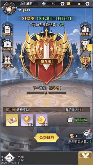 奖励一览:斗魂积分(可以在商店兑换魂师、祈灵水晶)和段位奖励(包括金魂币、斗魂积分、魂师碎片等)