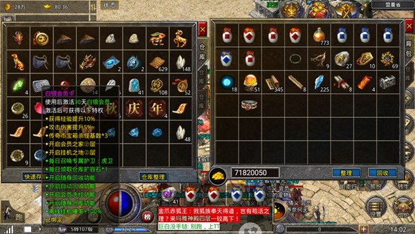 一路哼着小曲,主线很轻松的就做完啦。做完主线大概是70级左右,如果大部队还没有做完主线,可以找几个基友快速的扫荡一边可以击杀的BOSS,抢占先机,积累一定的基础装备,多余的装备还可以在比奇城装备回收员处回收,也能得到不少的经验和金币。