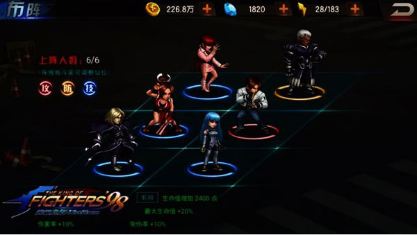 在《拳皇98终极之战OL》中,不知火舞可以说是完全可以媲美14资质首领格斗家的存在,凭借其对男性格斗家的减攻效果以及不俗的群体输出能力,不知火舞在大部分玩家阵容中占据着一席之地。然而要想使其输出最大化,离不开其他格斗家的辅助,今天就为大家推荐一套创世虎魂的半女队阵容。