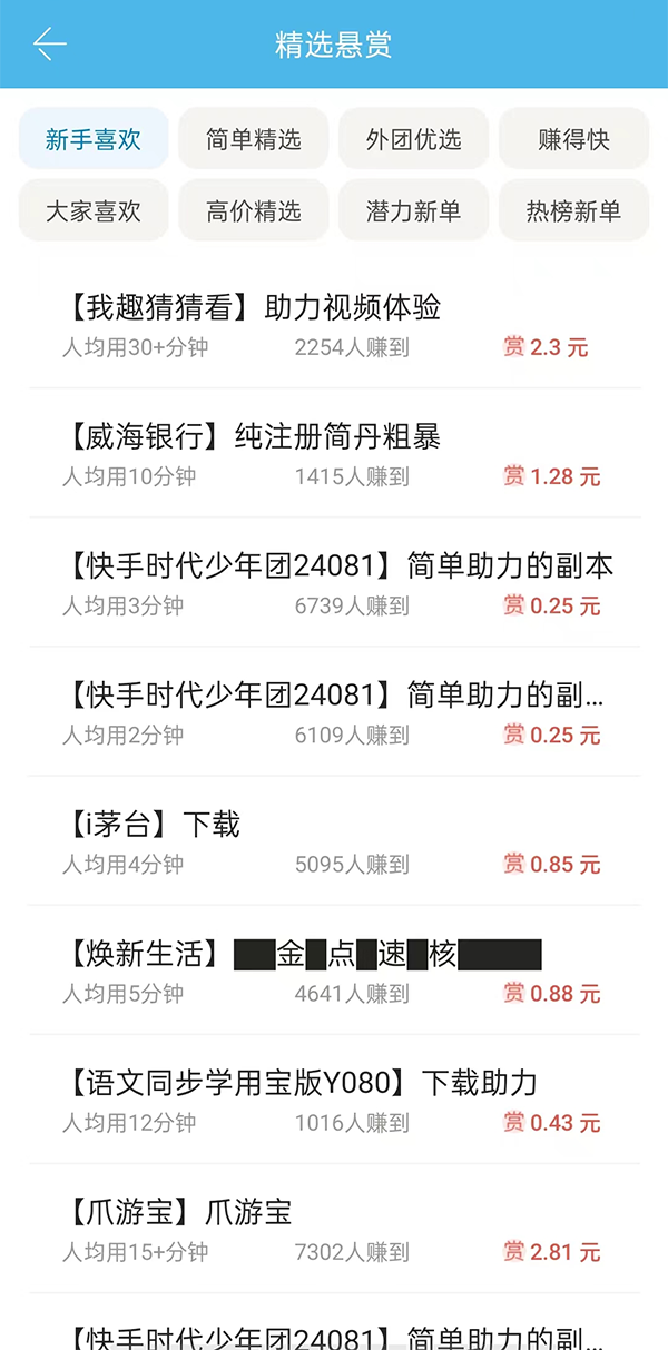3、还有精选悬赏,都是精选任务