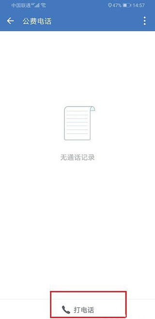 2、下面我们来使用一下公费电话,打开企业微信,点击公费电话,选择打电话,如下图所示:
