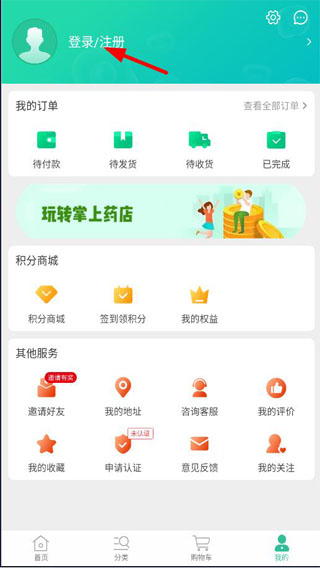 3、点击头像旁边的注册或者登入即可