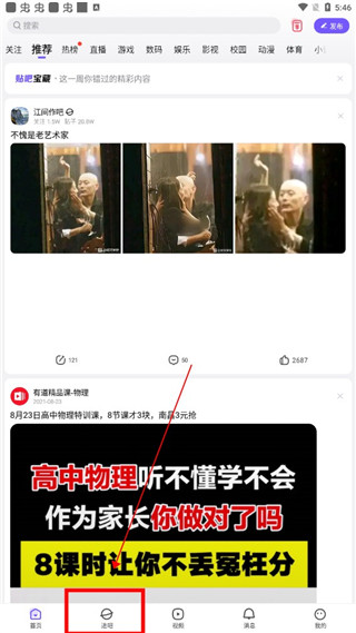4、打开百度贴吧后,首先进入的是“首页”,如下图所示,各种菜单栏都可以点击进去查看。